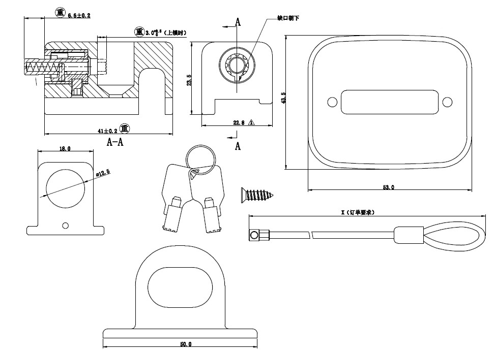 1、锁头、缆绳、搭扣等各附件可选择搭配