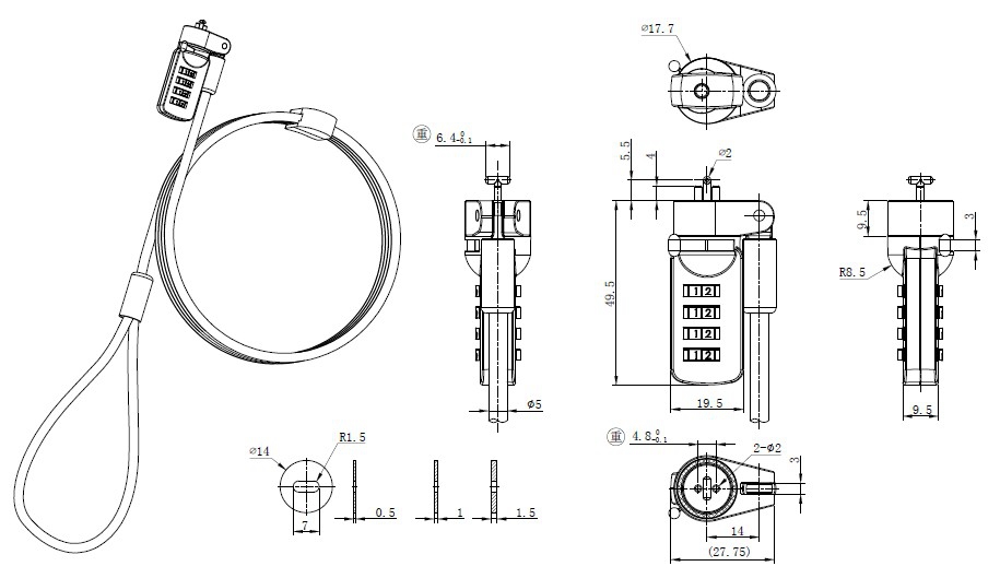 1、锁头、缆绳、搭扣等各附件可选择搭配