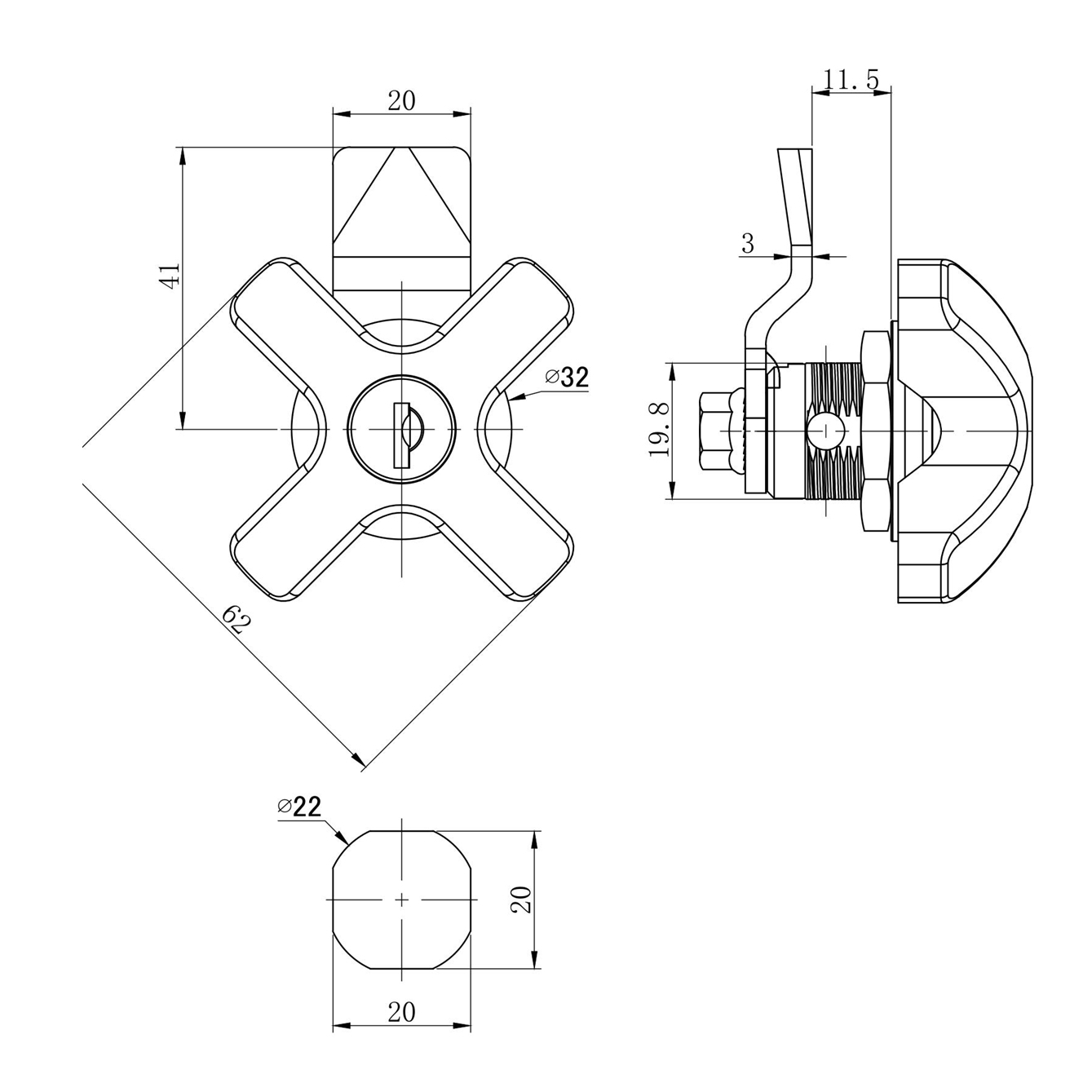 X型把手机箱机柜锁MK405-06