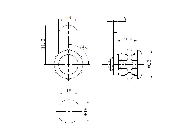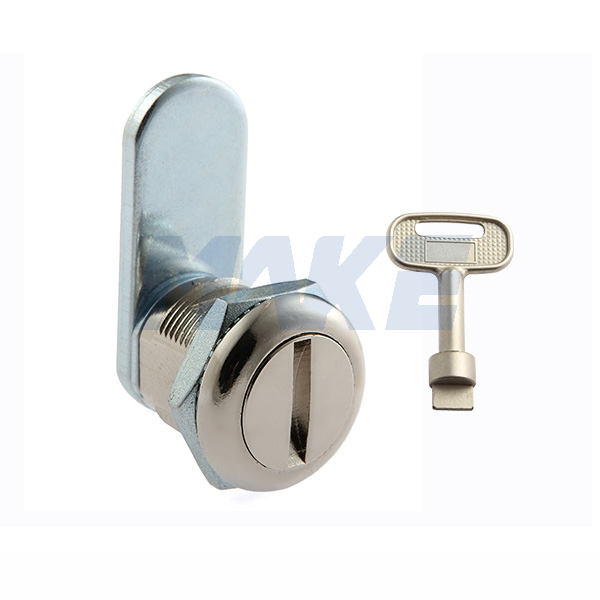 亿万28机箱机柜锁MK407-7,锌合金材质,直舌片,带一字型钥匙,向右旋转90°即可上锁,操作方便,常做为广告箱锁,配电箱锁,电表箱锁,广告机锁等。