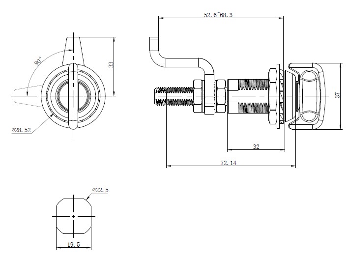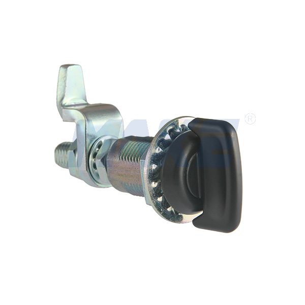 亿万28机箱机柜锁把手锁MK414,锌合金材质,带折弯舌片,W型把手,支持定制,常做为配电箱锁,电表箱锁等。