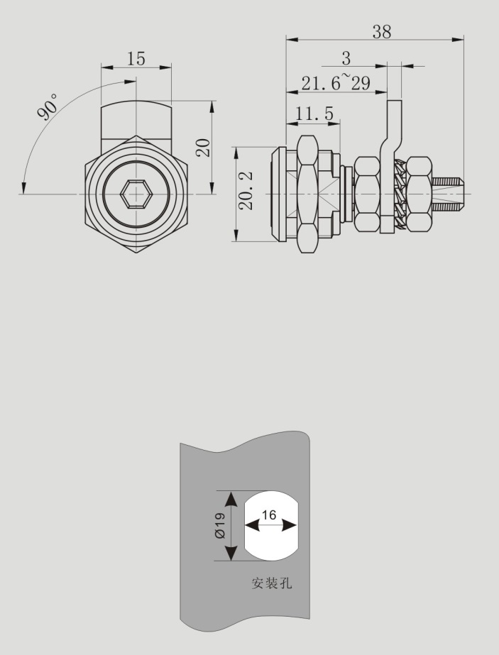 高强度户外防锈用机箱机柜三角锁MK908-5