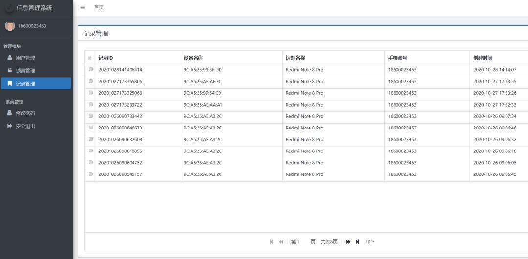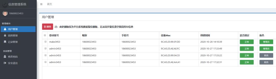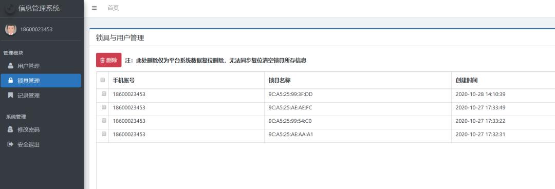 两个平台均可查看开锁记录、用户账户信息、用户与锁具设备的关联关系,实现精细化管理。