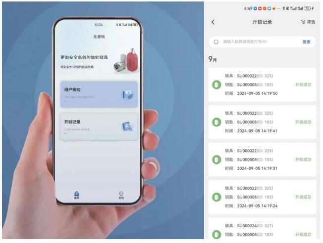 锁具与钥匙之间加密传输,破解难度大,有效防止非法侵入。
