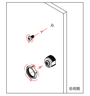 2、锁紧锁体:将适合门板厚度的螺丝插入预先钻好的安装孔,并用十字螺丝刀顺时针旋紧,然后将螺母顺时针旋入锁体,并用扳手锁紧。