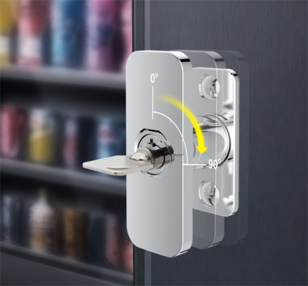此外,亿万28两款智能自助售货机锁还备有机械应急解锁功能。遇到特殊情况时,工作人员可取下防尘盖,插入应急钥匙,顺时针旋转90°即可解锁。