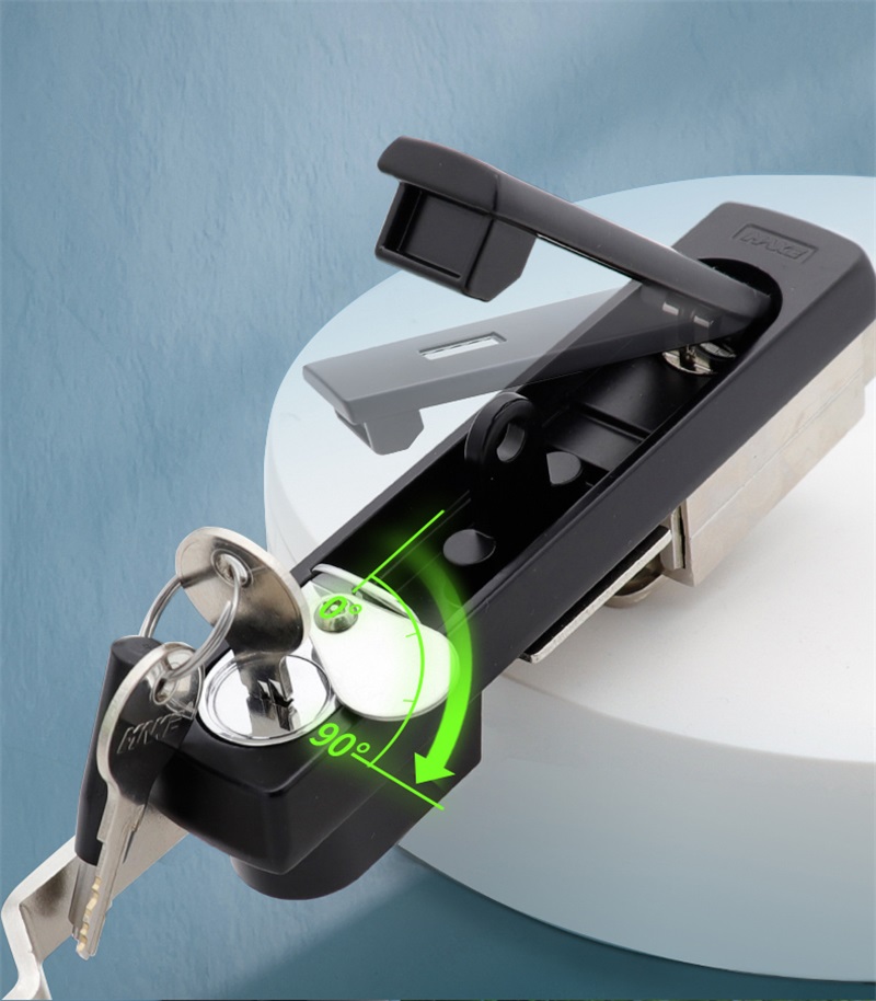 开锁简单快捷。打开防尘盖后,插入钥匙,将钥匙旋转90°,锁具弹出T把手,旋转T把手,完成开门。整个过程只需2秒。它的开锁原理是通过天地栓回缩转舌片旋转90°达成。