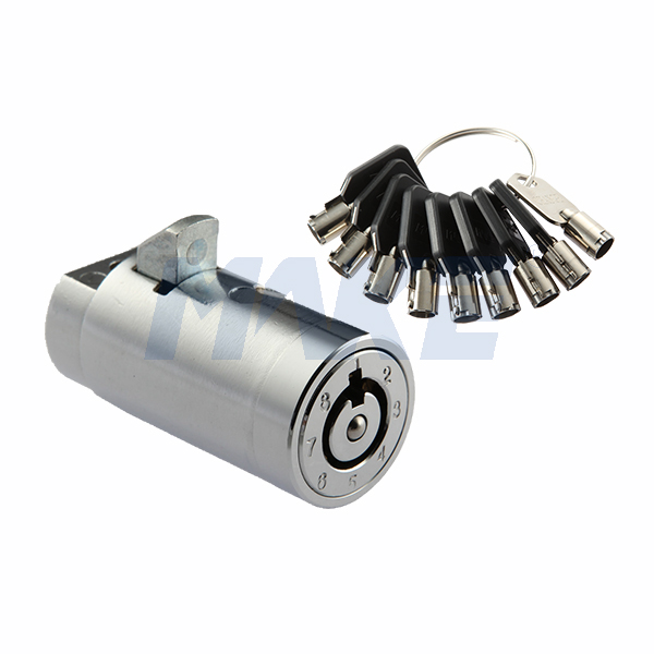 亿万28自动售货机锁锁芯MK209,锌合金材质,配备管状钥匙系统,此款锁具最大的特点是牙花可调,安全可靠,经济实惠。一把管理钥匙管理八把杂号钥匙,外人根本无法识别,相当于一锁八用。