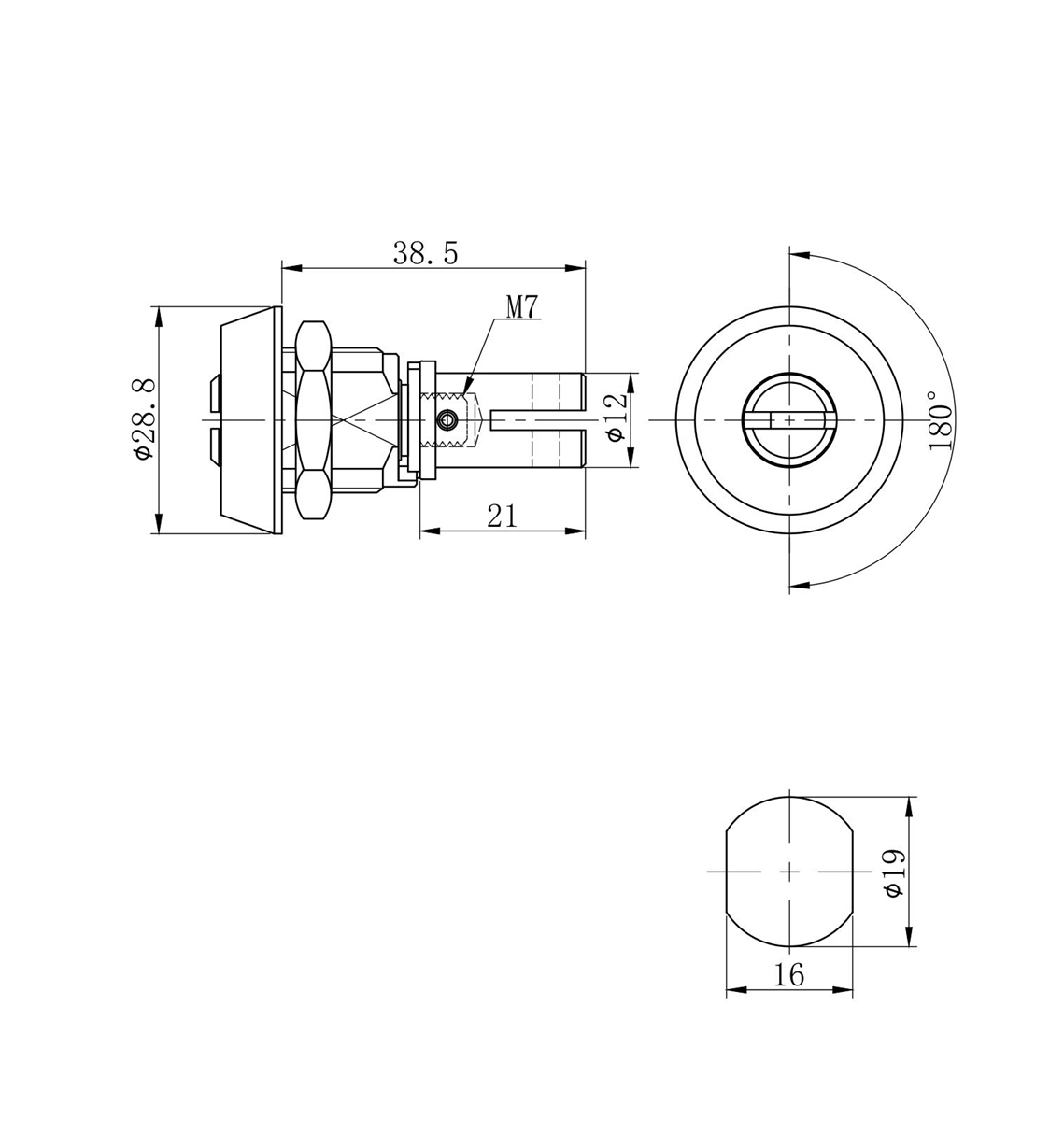 ●产品介绍 亿万28自动售货机锁自动贩卖机锁MK114-18,具有弹子钥匙系统,可旋转180°,带槽长杆,采用锌合金和铜制作而成,安装便捷,支持定制。此款锁具大小适中,适合在多种机箱上使用,例如售货亭锁,服务器锁,机箱机柜锁,无人售货机锁,智能终端锁等。
