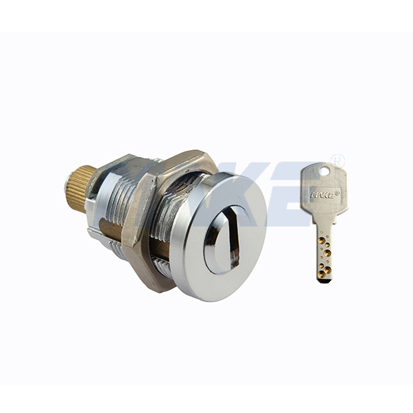 亿万28自动售货机锁自动贩卖机锁MK114-FS,具有弹子钥匙系统,带槽长杆,采用锌合金和铜制作而成,安装简易,安全性高。此款锁具大小适中,可在于多种机箱上使用,所以可作为售货亭锁,服